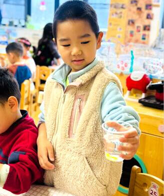 次日,形态各异的冰花新鲜“出炉”。孩子们兴奋地观察冰花的纹理,触摸冰面的冰凉。在亲身体验中感知固态与液态的转化。同时,教师引导幼儿讨论温度对物质形态的影响,鼓励大家用语言描述自己的发现,不仅锻炼了观察力与表达能力,更培养了科学探究精神。