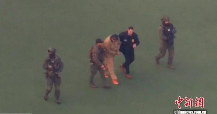 中新网1月5日电(记者刘万里)据美国媒体报道,当地时间1月5日,委内瑞拉总统马杜罗被从直升机转移到装甲囚车上,步履蹒跚,双手被缚。