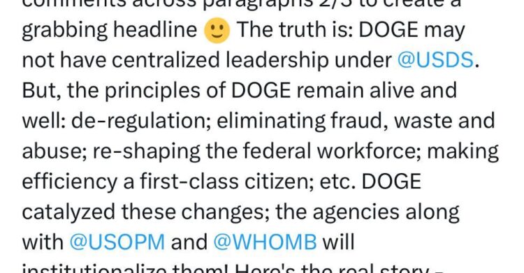 库珀表示,政府效率部或许不再会有“集中化的领导”,但其工作准则将继续保留:减少章程架构;减少欺诈、浪费和滥用;重塑联邦人力结构;将效率放在首位等等。“政府效率部”催动了相关变革,美国人事管理局、白宫管理和预算办公室一起将其制度化,“这才是真相”。