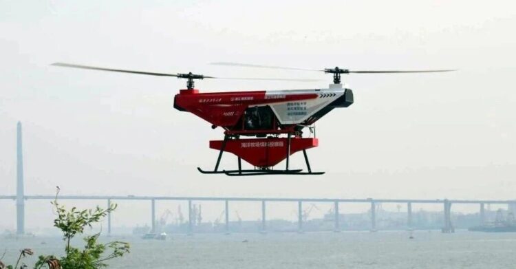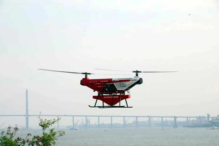 据悉,该直升机由西北工业大学、湛江湾实验室联合湛江首善城市发展集团有限公司联合相关企业合作研制。该机型起飞重量500kg,载重200kg,续航3小时,是一款针对长航时、大载重特种作业开发的无人机,主要用于海洋牧场投喂、海上平台应急救援与物资投送、海事巡逻与搜救等场景应用。