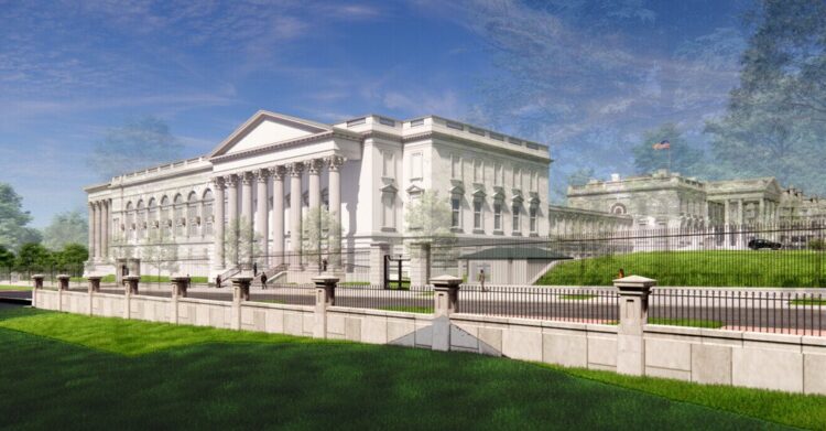 特朗普表示,该项目将取代非常小且破旧的多次重建过的东翼,其高度和规模将与历史白宫保持一致。“如果你注意到,宴会厅的北侧墙面将复制白宫北立面设计。”