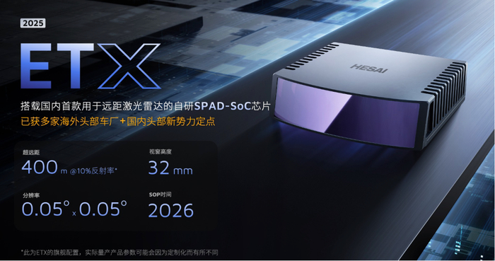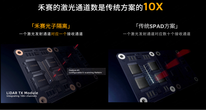 所以今年年初禾赛发布的适配L3、L4方案的激光雷达ETX,搭载了国内首款用于远距激光雷达的自研 SPAD-SoC 芯片,核心是禾赛自研光子隔离技术——