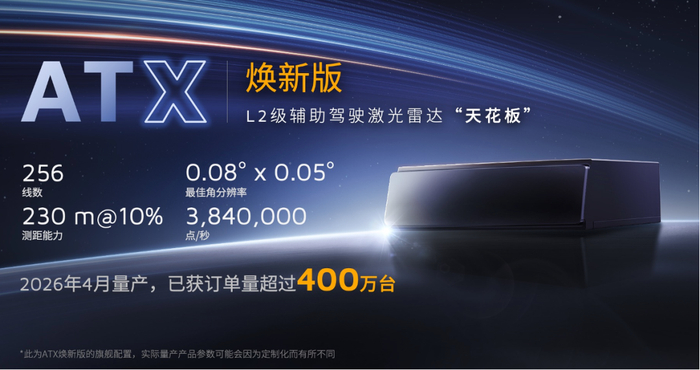 第二是ATX旗舰版256线所见即所得的前提下,技术拉高性能上限。不如发射端采用禾赛自研的VCSEL激光器阵列,通过调控激光束的状态参数,实现光场动量在三维空间的矢量可控分布,能显著降低环境光的干扰,提升信噪比,在保持Class 1人眼安全等级前提下提升 30% 的测距能力。