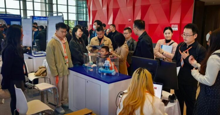 在博极生命科技展台上,“笑熵01”吸引了许多参会者的关注。(李恬名 摄)