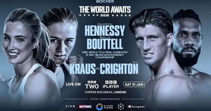 北京时间2月1日凌晨,伦敦Copper Box Arena(铜盒子体育馆,曾经举办过伦敦奥运会的相关赛事)将迎来这块场地的首场世界级拳击比赛,来自中国M23战队的拳手艾丽·布特尔与WBC国际金腰带拥有者弗朗西斯卡·轩尼诗将争夺WBC雏量级世界银腰带。