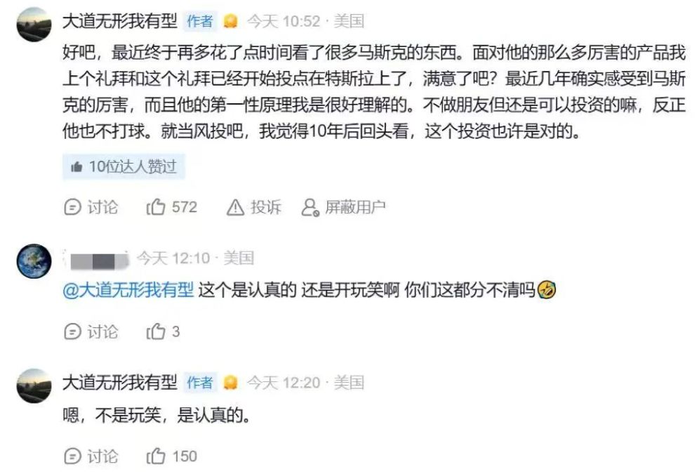 一石激起千层浪,网友们对此议论纷纷。面对部分网友的询问,段永平也进行了回应:“不是玩笑,是认真的。”