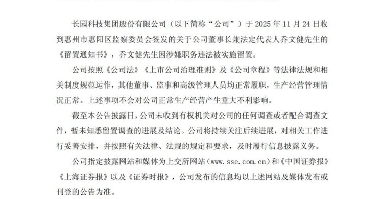 ST长园董事长,上任两个月即被留置!什么情况?